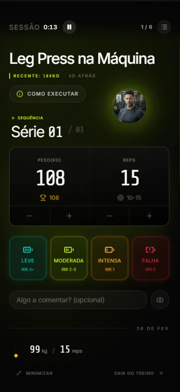 Cada pessoa treina diferente. Seu personal aprende com você: seu corpo, sua rotina, seus limites. E ajusta tudo para que o próximo passo seja sempre o certo.